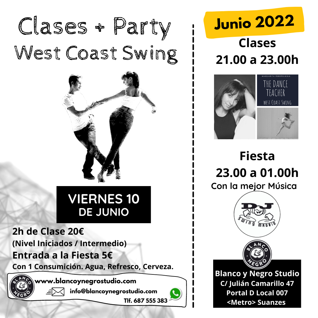 Hola a tod@s. Os queremos invitar a nuestras Clases y Fiesta de West Coast Swing de Junio 2022. Y disfrutar de nuestra terracita de Verano.