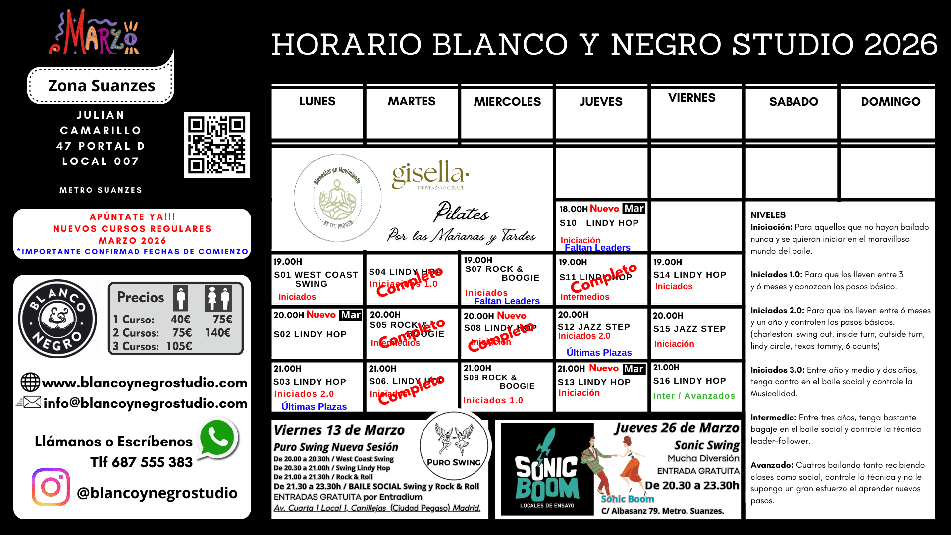 NUEVAS Clases en Marzo.  Repleto de clases y nuevas actividades.