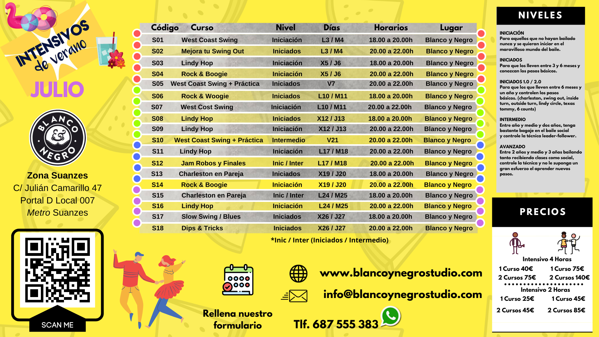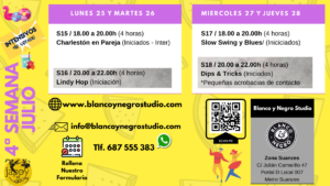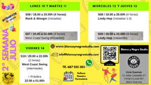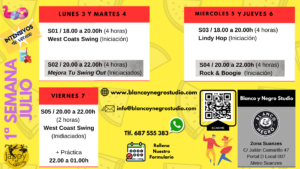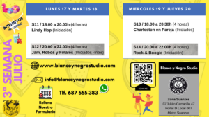 Tenemos diversidad de grupos y todos niveles. De Swing / Lindy Hop, Swing Out, Chalestón, Rock & Roll, Booguie, Blues, West Coast Swing…