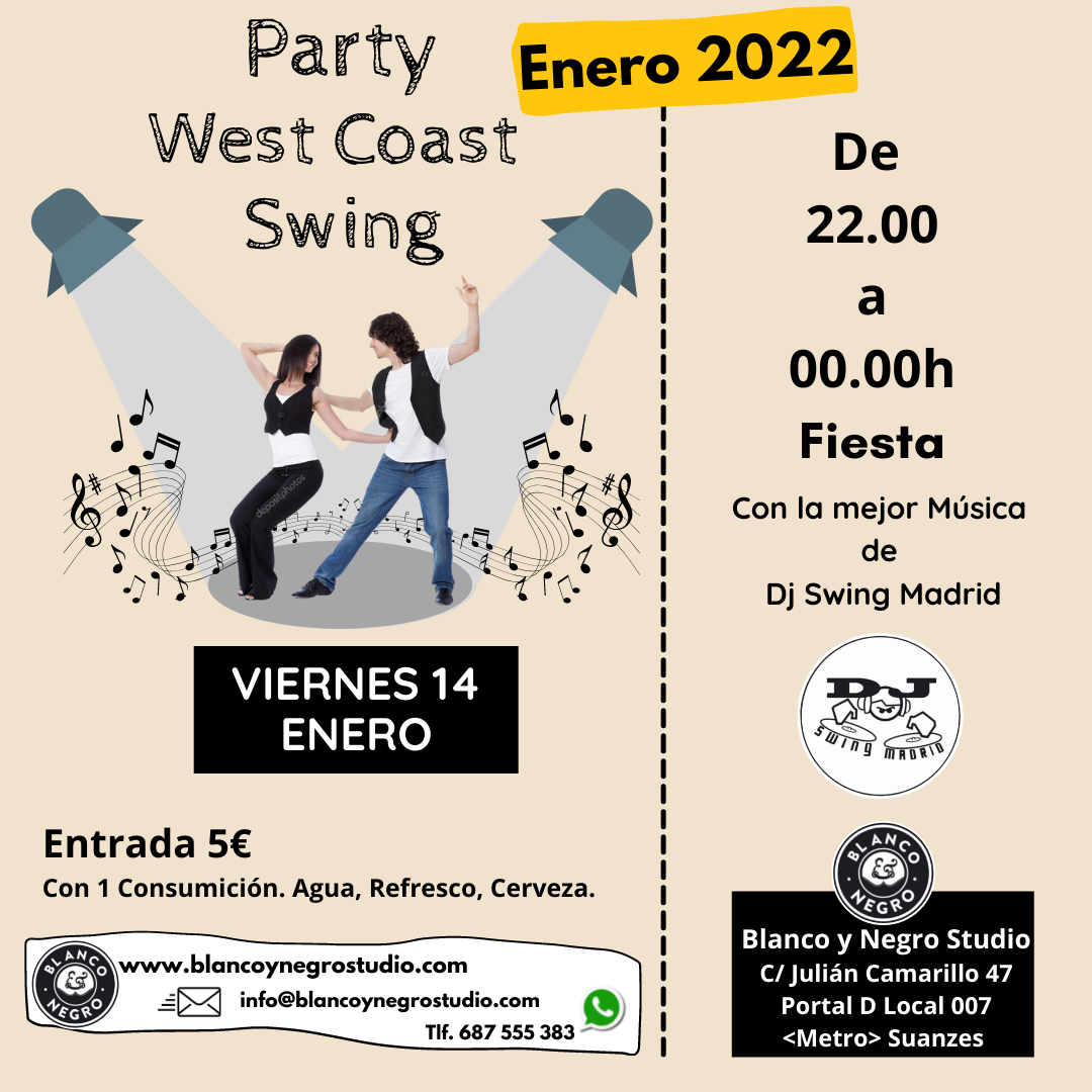 Hola a tod@s. Os queremos invitar a nuestra fiesta de West Coast Swing de esta nueva temporada Enero 2022.